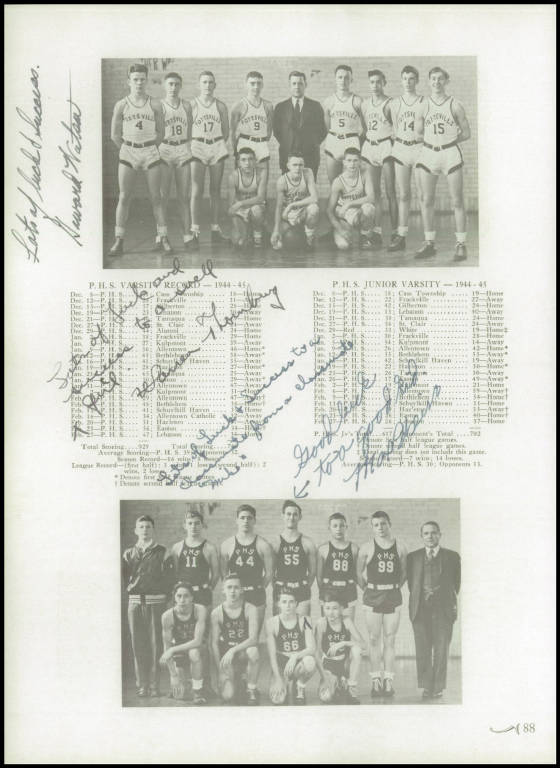47-36. Pottsville High claimed the top scorer in the East Penn League when McClure captured the title, scoring 129 points.
